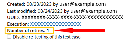 The number of retries will now be visible in the test case panel just below the Execution ID.